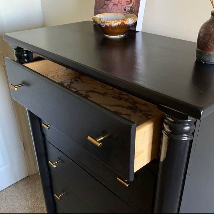 Apparently furniture polish is a really good option for sprucing up the inside/bottom of a drawer. @piecebypiecefinds recommended Daddy Van’s all natural Beeswax & lavender Furniture polish. Another option to consider in the future!